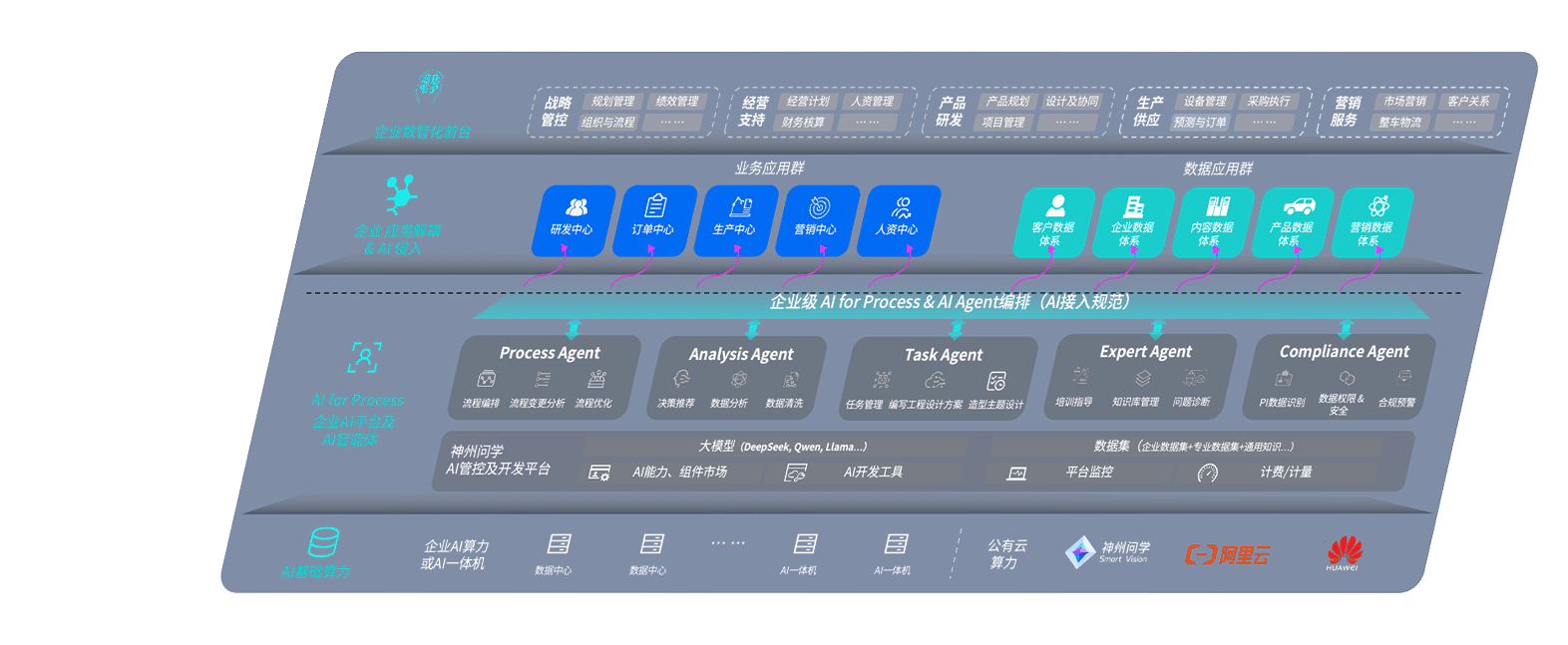 端到端的一站式AI工作空间深度融合了从企业战略规划到日常经营的全流程业务板块,,定向解决车企内部领域多、、部门多、、、、链条长、、、场景碎片化等难题,,,支持车企快速构建以AI为核心的生产力写作体系,,,实现任务执行与AI能力的无缝集成与交互